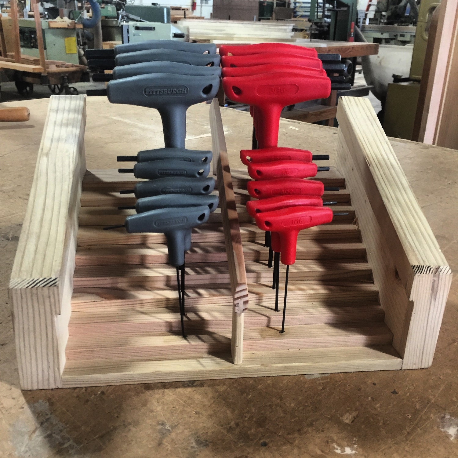 One mans trash is another mans treasure. couldnt let these beutiful picees of scrap wood go to waste so i got a little creative and made a custom staircase to hold my T-handle allen wrenches